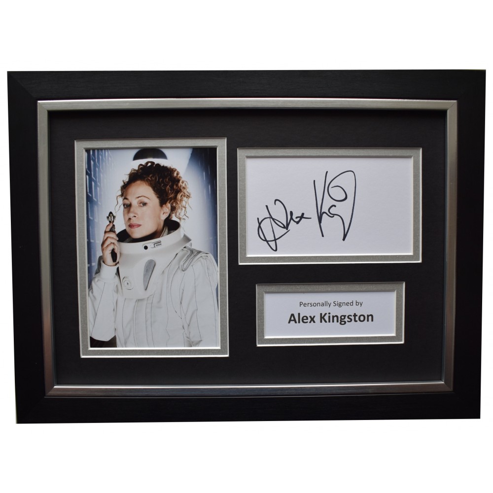 You are looking at a high quality, professionally FRAMED & mounted photo display which has been personally signed by actress, Alex KingstonThe white card has been signed and is complimented with a 6x4 inch photograph and then housed within a double mount that compliments the quality black frame making it an A4 size overall framed display (same size as a standard piece of A4 paper - approx 21x30cm). This is ready to be hung straight on the wall or can also be free standing- a really impressive piece of memorabilia that would make a perfect affordable gift for someone special.