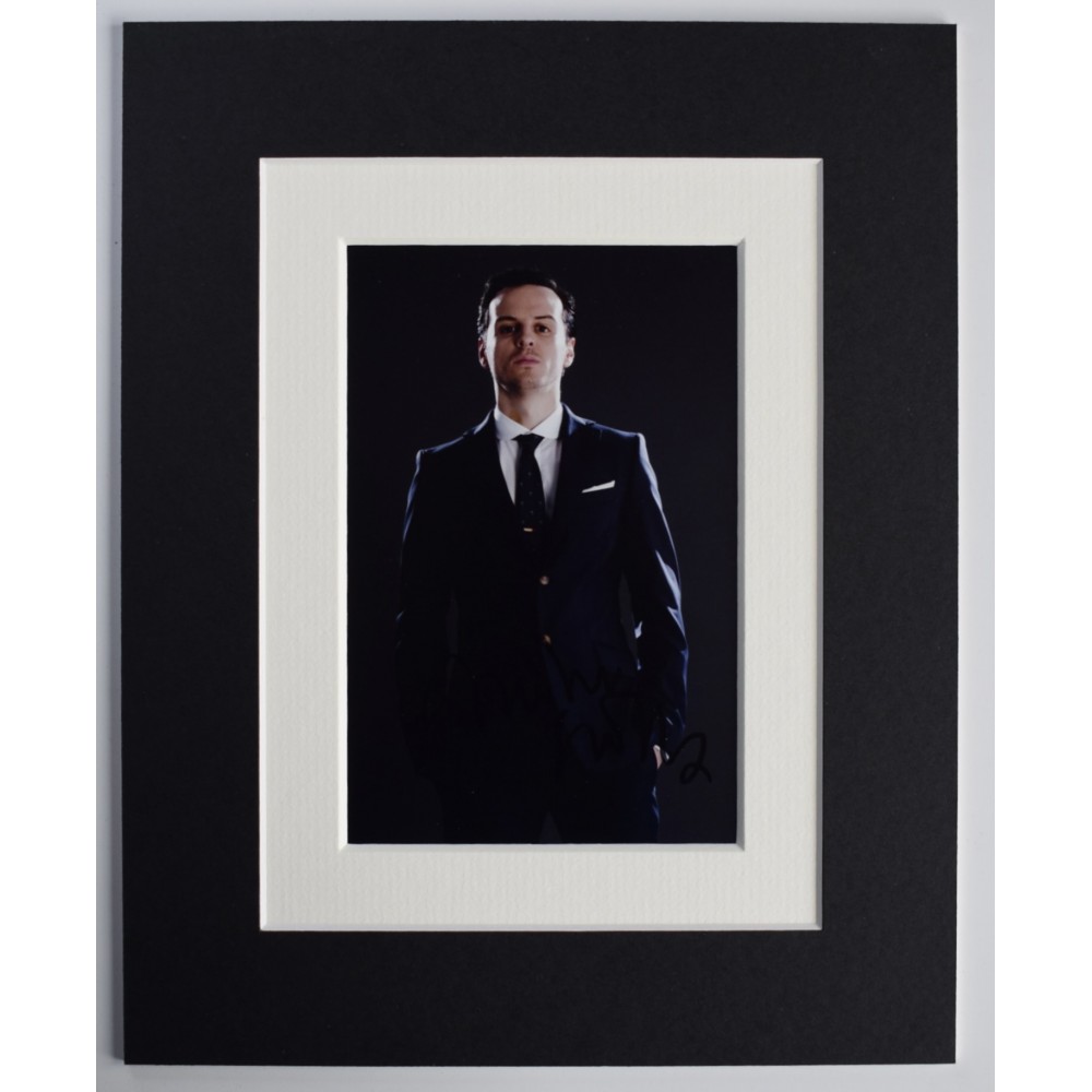 A 10x8 mounted photo display, signed by Sherlock actor, Andrew Scott