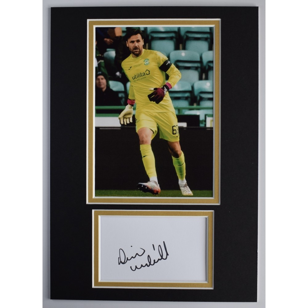 A4 photo mount display personally signed by Hibs goalkeeper, David Marshall