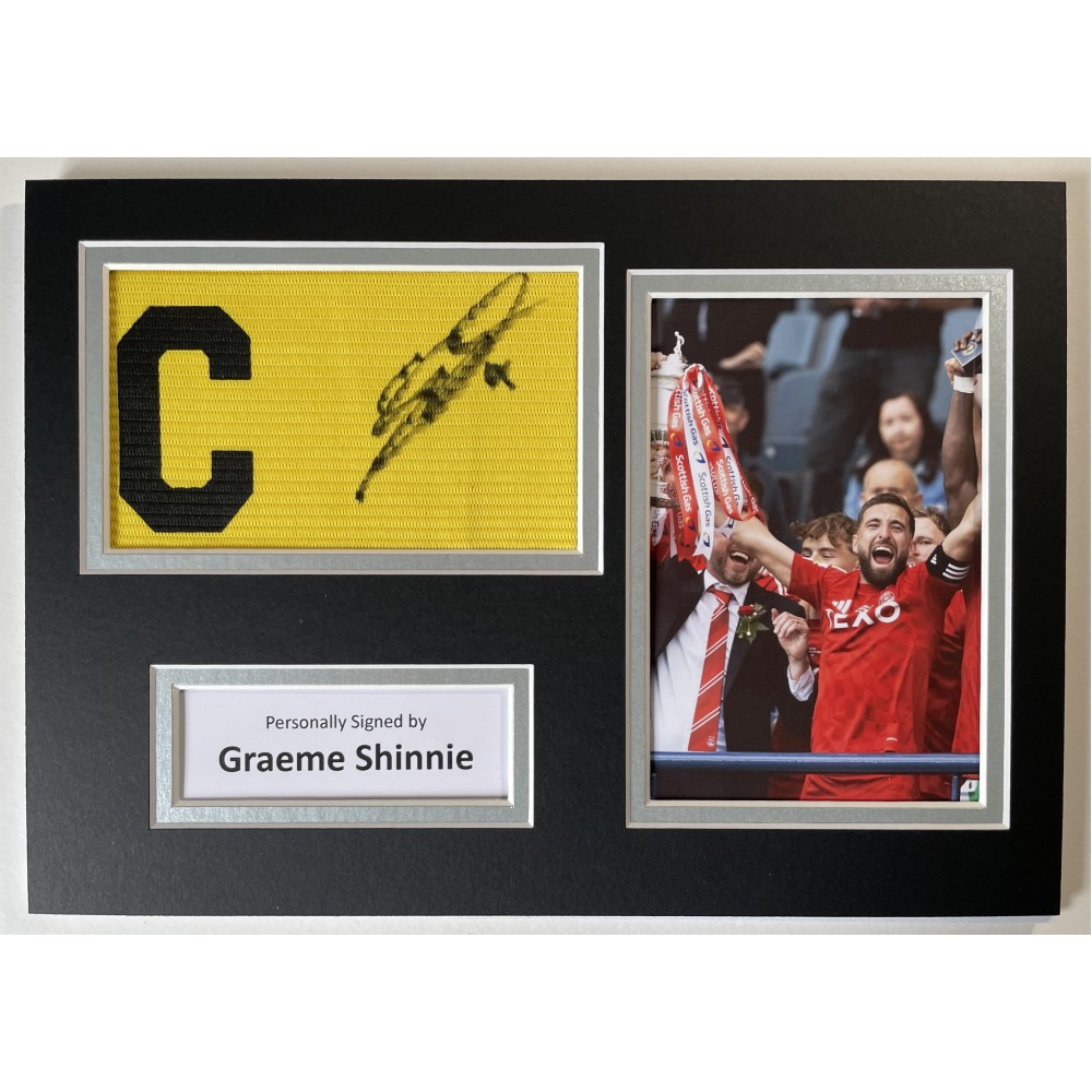 Signed by Aberdeen captain, Graeme Shinnie - an A4 captains armband & photo mount autograph display.