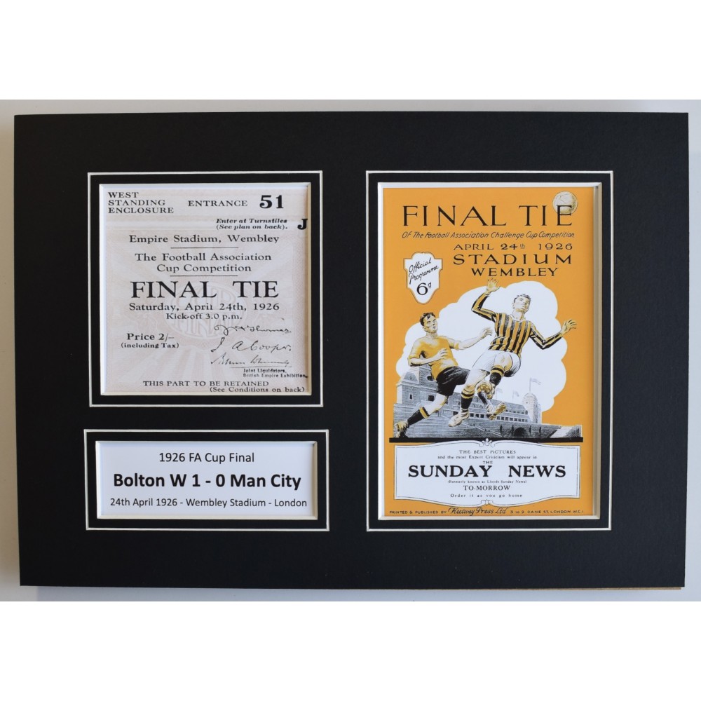 A4 photo mount ticket display - 1926 FA Cup Final Bolton Wanderers