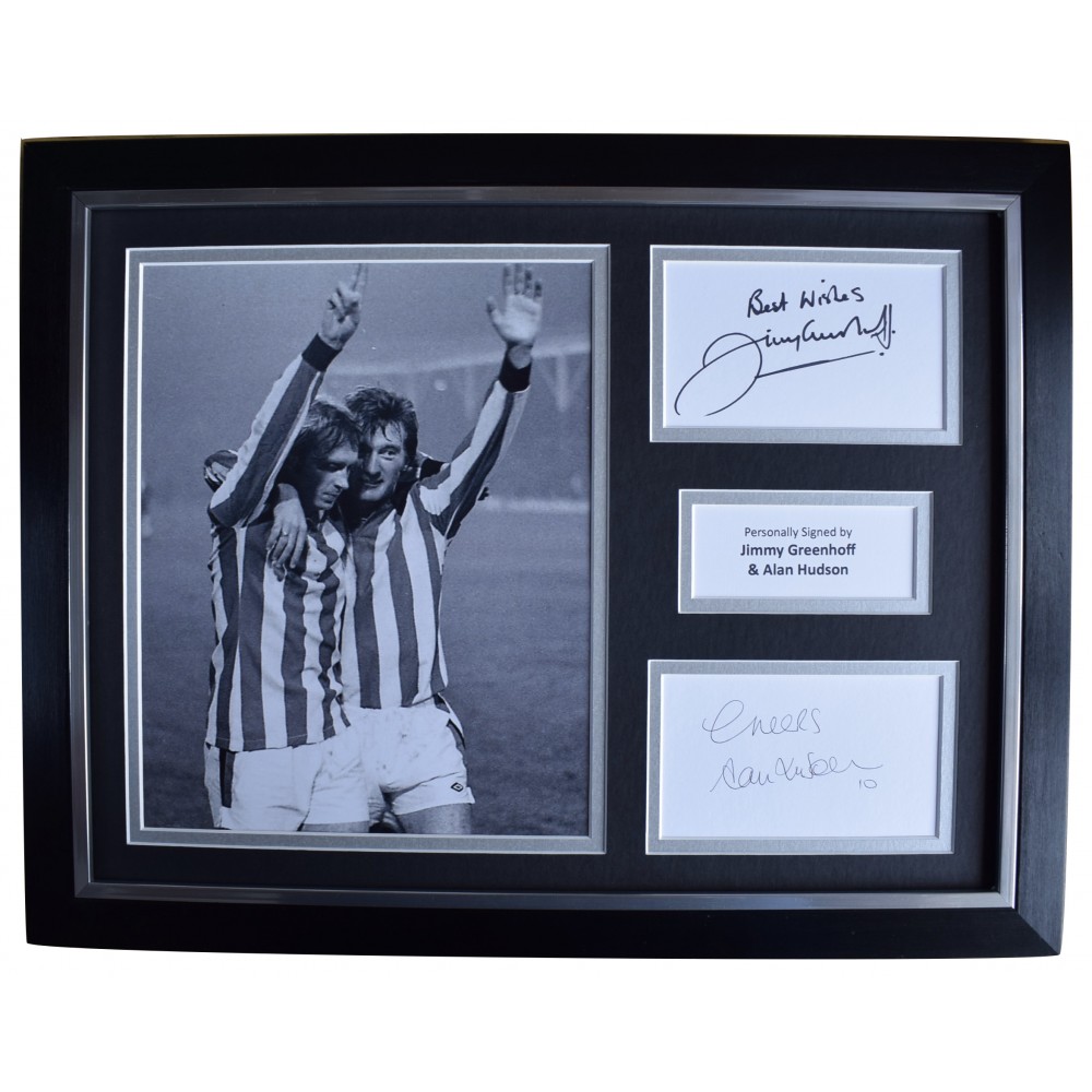 Jimmy Greenhoff & Alan Hudson Signed Autograph 16x12 framed photo display Stoke AFTAL Perfect Gift Memorabilia