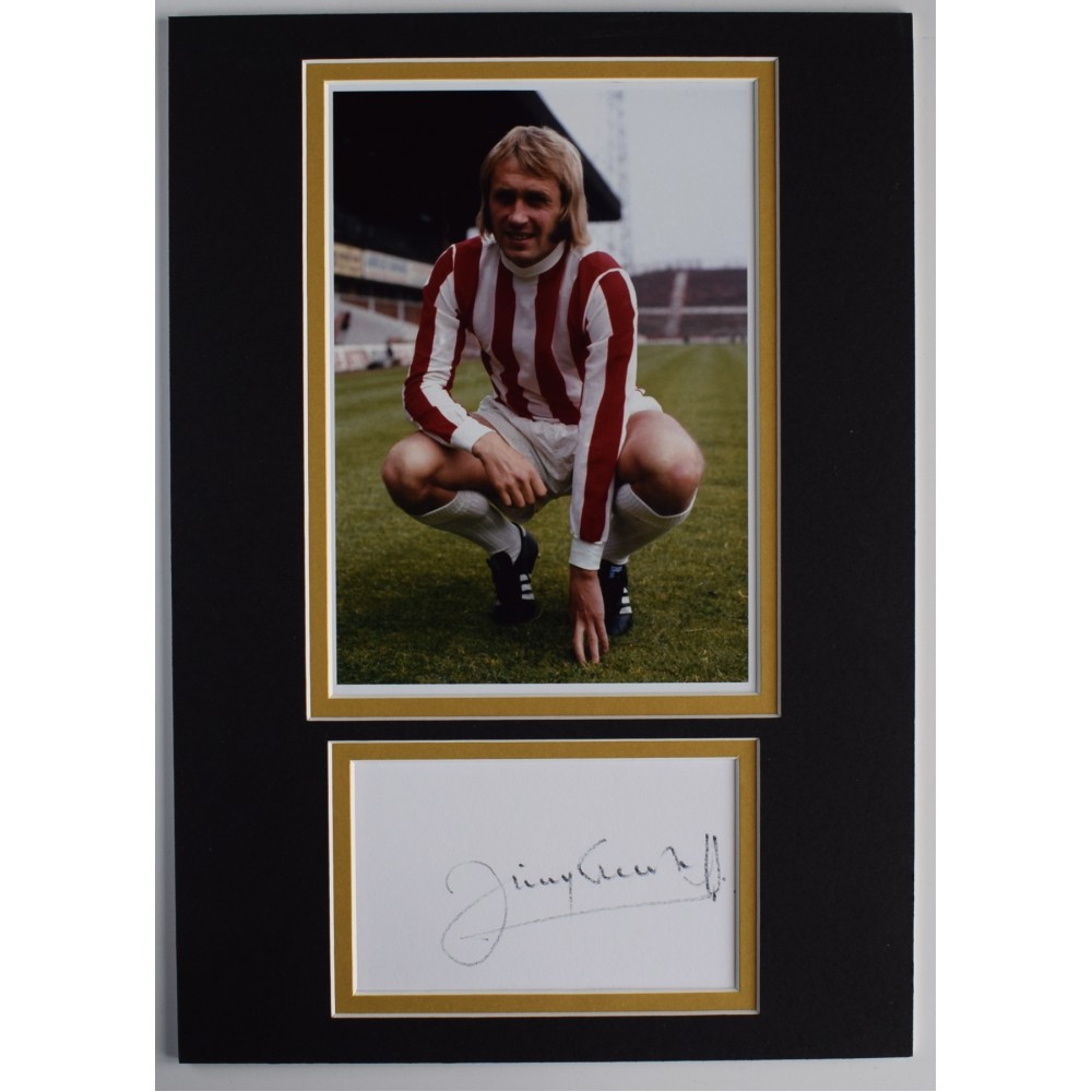 A4 photo mount display personally signed by Stoke City legend, Jimmy Greenhoff