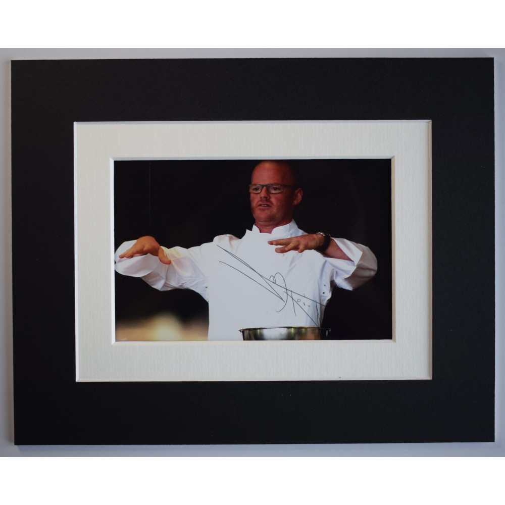 A 10x8 mounted photo display, signed by celebrity chef, Heston Blumenthal