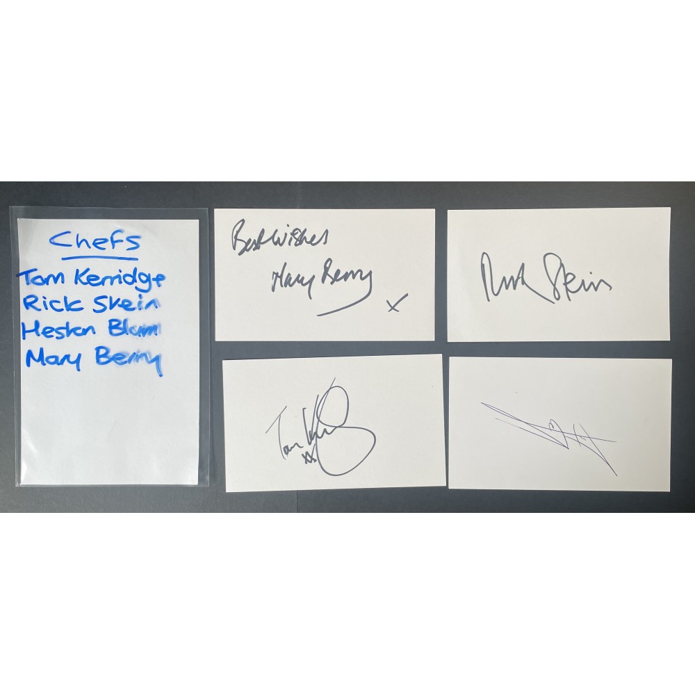 Kerridge Stein Mary Berry Heston Signed Autograph Pack White Index Cards x4 Chef