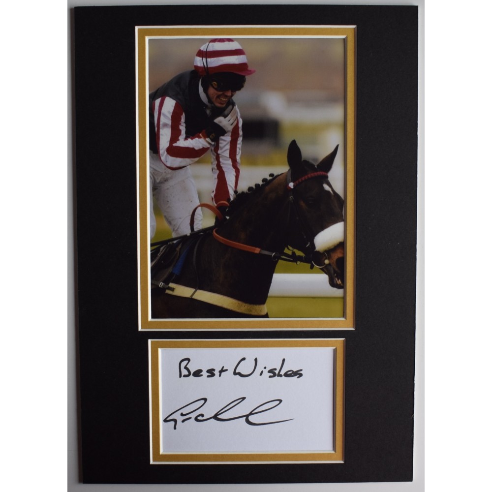 A4 photo mount display personally signed by horse racing champion, Graham Lee.