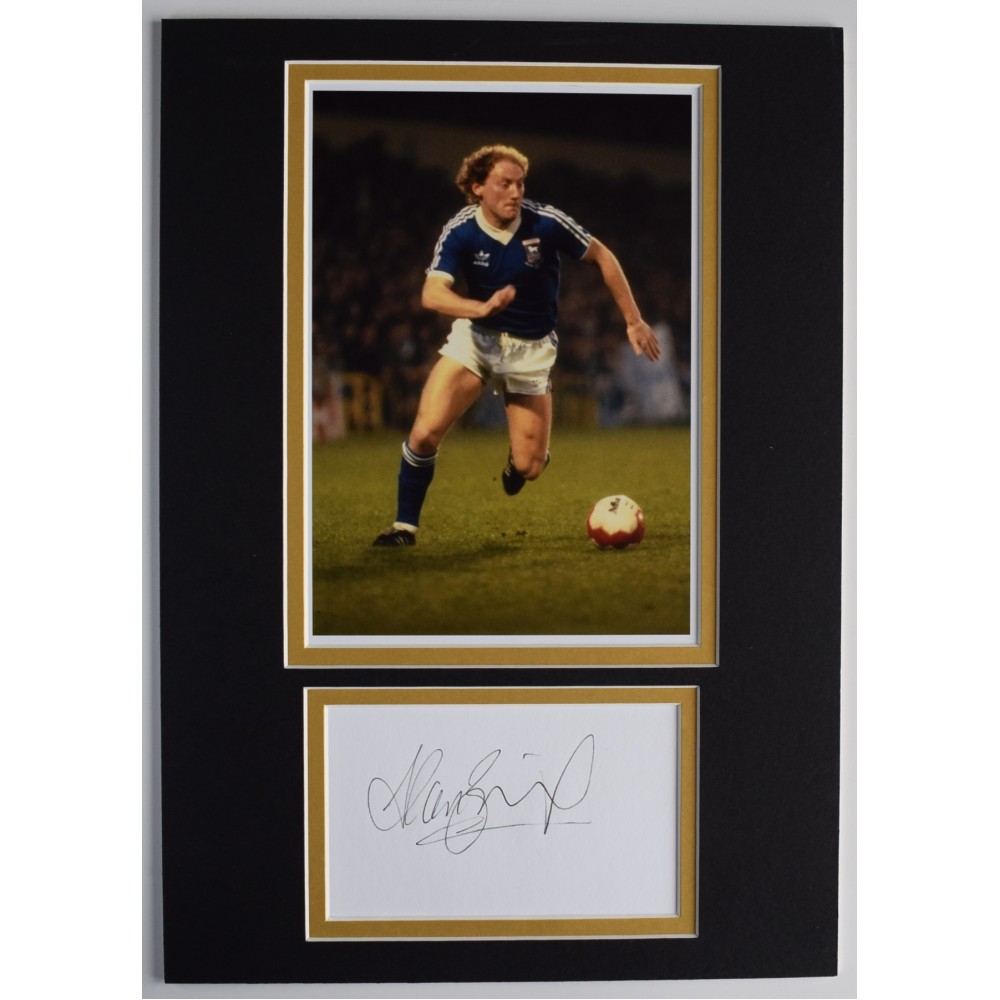 A4 photo mount display personally signed by Ipswich Town legend, Alan Brazil