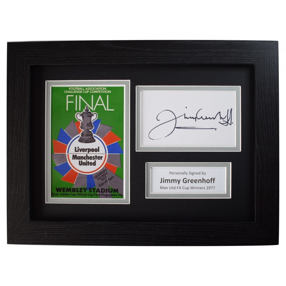 Jimmy Greenhoff Signed A4 Framed Autograph Photo Display Man Utd FA Cup 1977 COA Perfect Gift Memorabilia