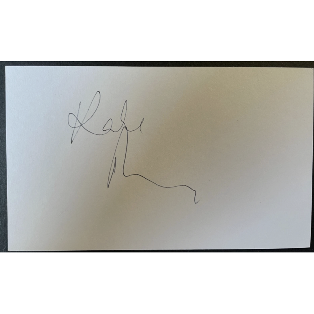 A white index card signed by legendary film & TV actress, Kate Phillips