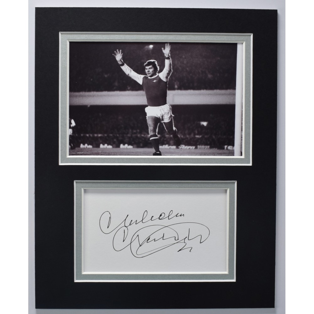 A 10x8 mounted photo display, signed by Arsenal legend, Malcolm Macdonald