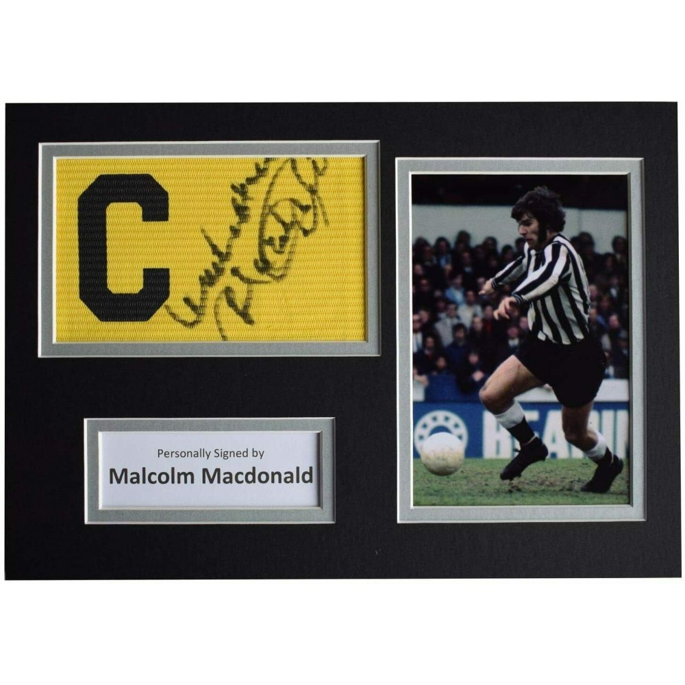 Malcolm Macdonald Signed Captains Armband A4 photo display Newcastle United COA AFTAL Perfect Gift Memorabilia