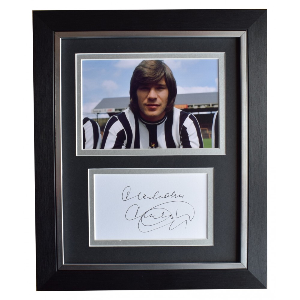 You are looking at a high quality, professionally framed & mounted photo display which has been personally signed by Newcastle United football legend, Malcolm Macdonald. The white card has been signed and complimented with a 6x4 inch photo and then housed within a superb double mount that compliments the deluxe black and silver trim quality frame making it a 10x8 inch size overall framed display. This is ready to be hung straight on the wall or can also be free standing- a really impressive piece of memorabilia that would make a perfect affordable gift for someone special.