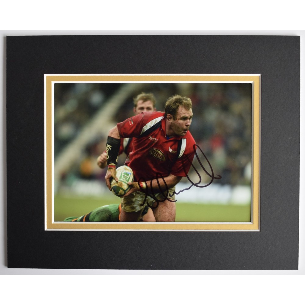 A 10x8 mounted photo display, signed by Welsh rugby legend, Scott Quinnell