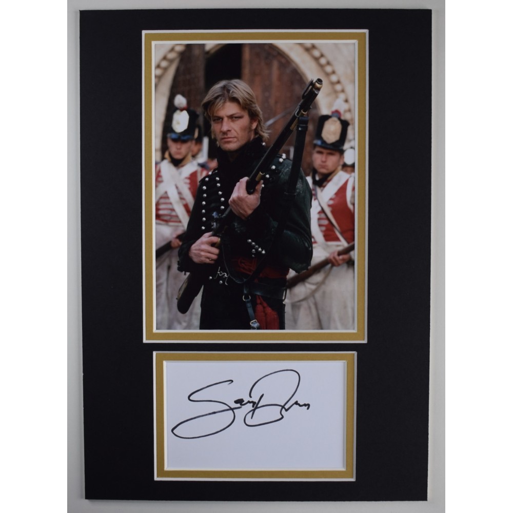 A4 photo mount display personally signed by Sharpe actor, Sean Bean - a lovely full autograph