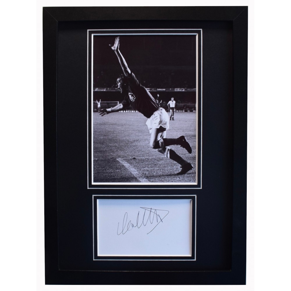 You are looking at a high quality, professionally framed & mounted photo display. The item has been signed then housed within a mount that compliments the quality black frame making it an A4 size overall framed display (same size as a standard piece of A4 paper - approx 21x30cm). This is ready to be hung straight on the wall or can also be free standing- a really impressive piece of memorabilia that would make a perfect affordable gift for someone special.