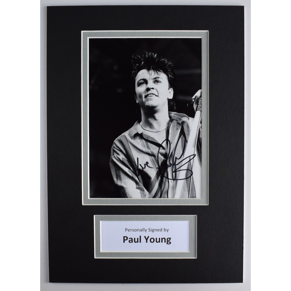 A4 photo mount display personally signed by Paul Young.