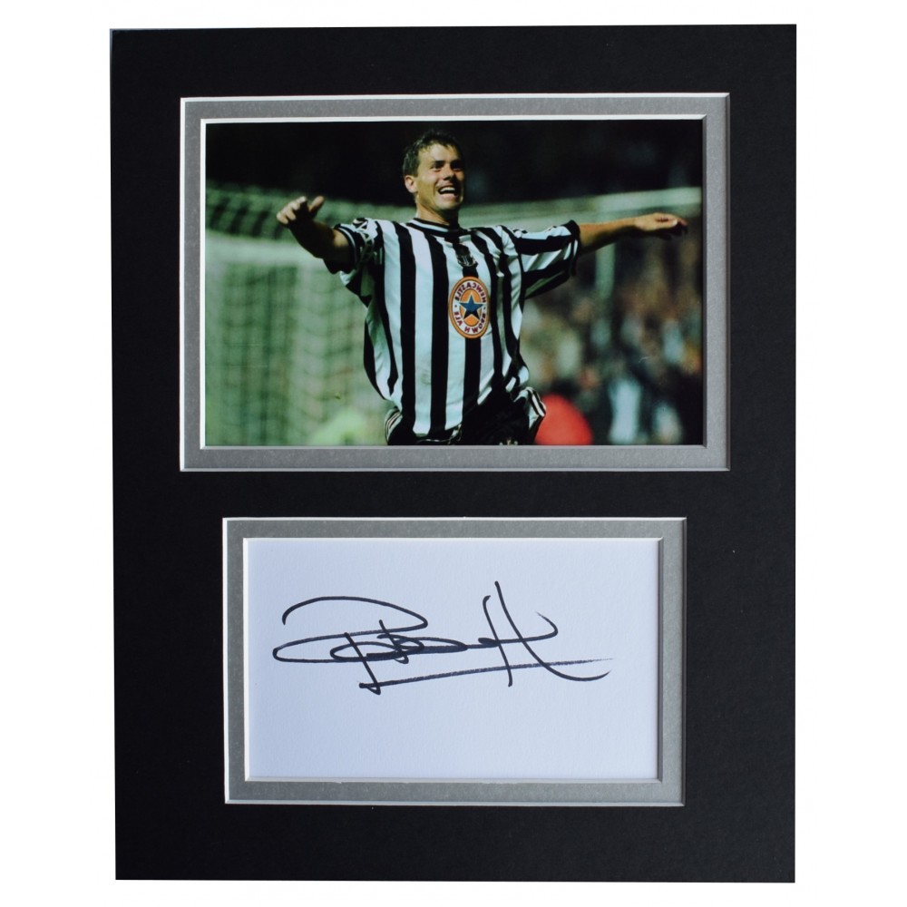 You are looking at a high quality, professionally mounted 10x8 inch photo display which has been personally signed by Newcastle United football legend, Rob Lee. This is a perfect affordable gift idea. The white card has been signed & complimented with a 6x4 inch photograph & then housed within a double mount making it an overall size of 10x8 inches, which is a standard size for a frame that can be bought from most supermarkets or high street stores. We use top quality double mount board (matting) that compliments the signed photo within and has been professionally cut using a state of the art laser cutter - a perfect piece of memorabilia and a fantastic gift. If you require any further information please contact us.