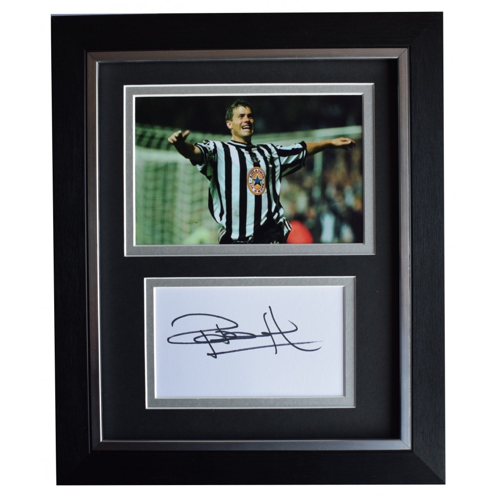 You are looking at a high quality, professionally framed & mounted photo display which has been personally signed by Newcastle United football legend, Rob Lee.  The white card has been signed and complimented with a 6x4 inch photo and then housed within a superb double mount that compliments the deluxe black and silver trim quality frame making it a 10x8 inch size overall framed display. This is ready to be hung straight on the wall or can also be free standing- a really impressive piece of memorabilia that would make a perfect affordable gift for someone special.
