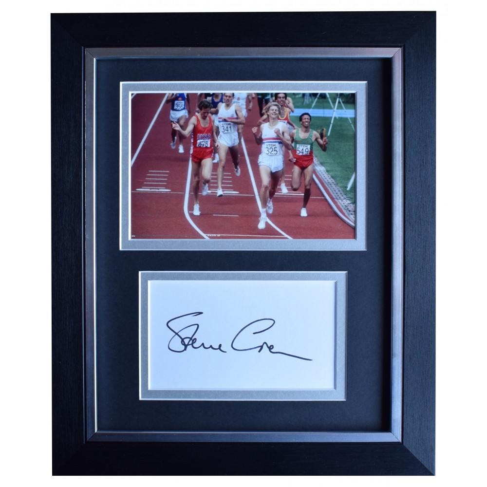 You are looking at a high quality, professionally FRAMED & mounted photo display which has been personally signed by Olympic athlete, Steve Cram. The white card has been signed and complimented with a 6x4 inch photo and then housed within a superb double mount that compliments the deluxe black and silver trim quality frame making it a 10x8 inch size overall framed display. This is ready to be hung straight on the wall or can also be free standing- a really impressive piece of memorabilia that would make a perfect affordable gift for someone special.
