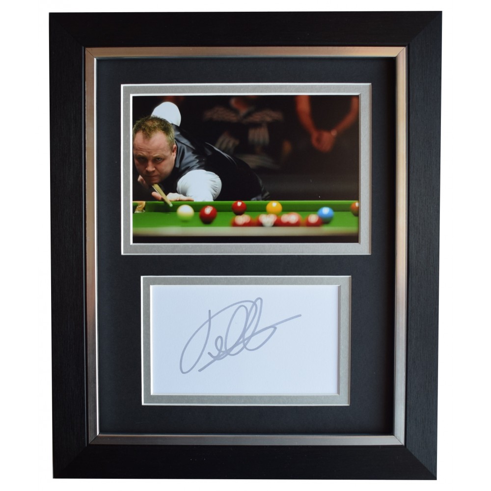 You are looking at a high quality, professionally FRAMED & mounted photo display which has been personally signed by snooker champion, John Higgins. The white card has been signed and complimented with a 6x4 inch photo and then housed within a superb double mount that compliments the deluxe black and silver trim quality frame making it a 10x8 inch size overall framed display. This is ready to be hung straight on the wall or can also be free standing- a really impressive piece of memorabilia that would make a perfect affordable gift for someone special.