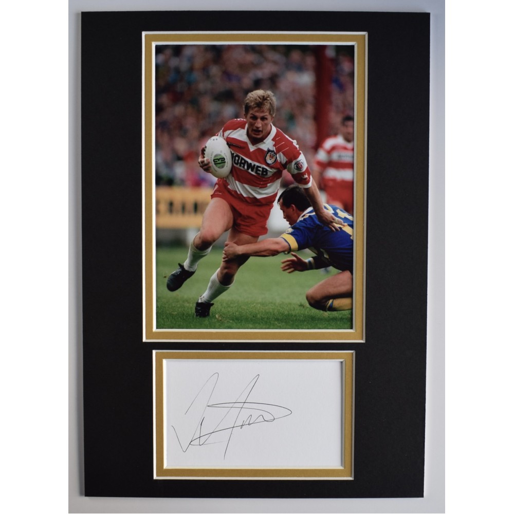 A4 photo mount display personally signed by Wigan Warriors rugby legend, Denis Betts
