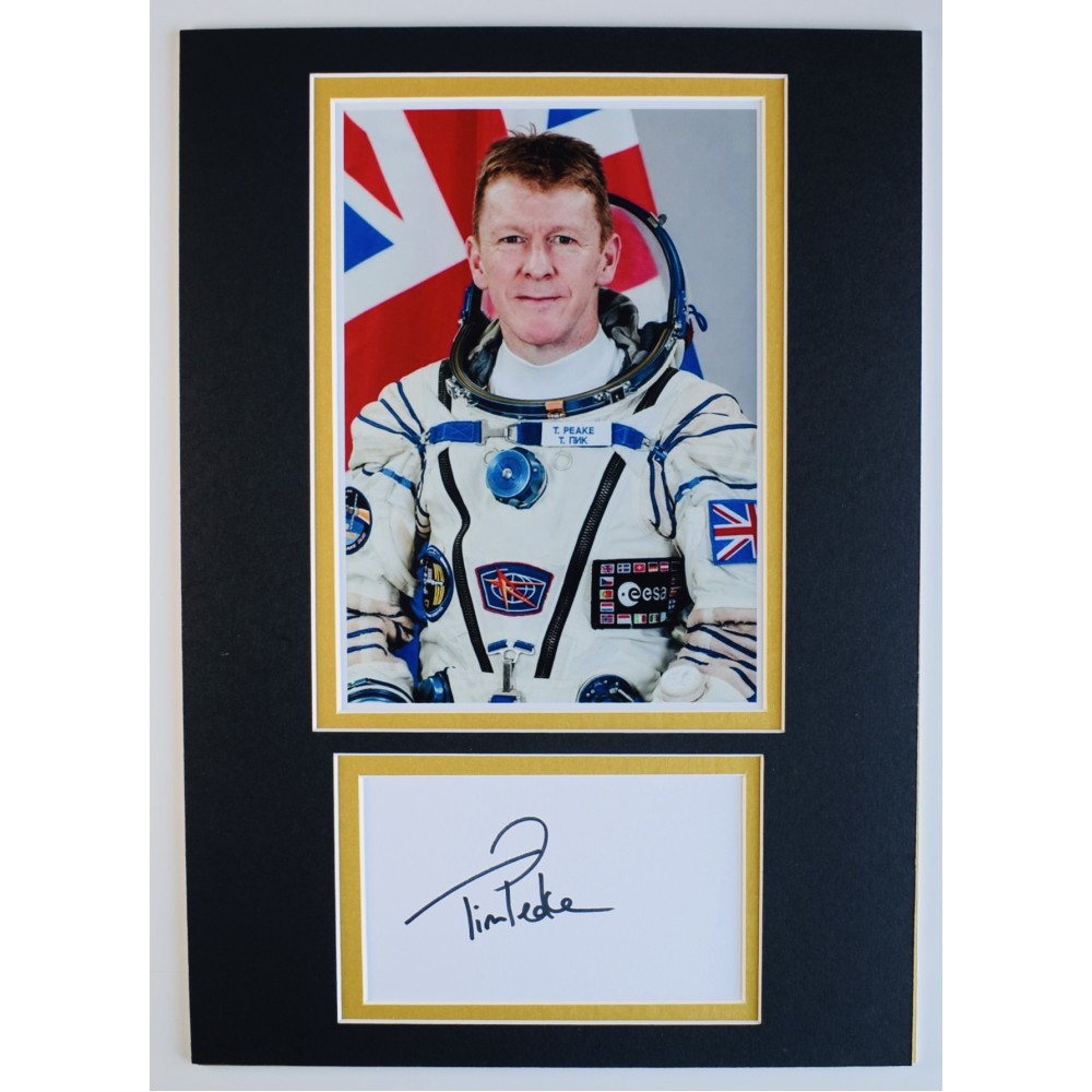 A4 photo mount display personally signed by astronaut, Major Tim Peake