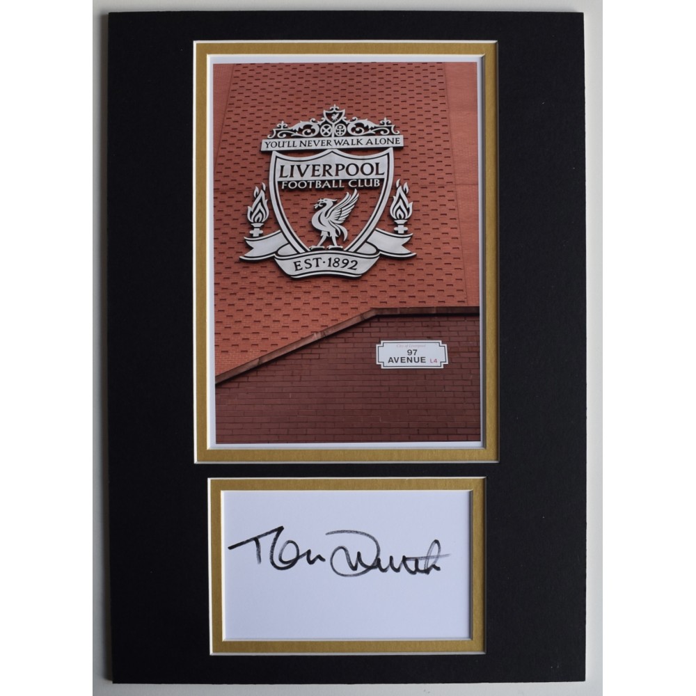A4 photo mount display personally signed by LFC football legend, Tommy Smith
