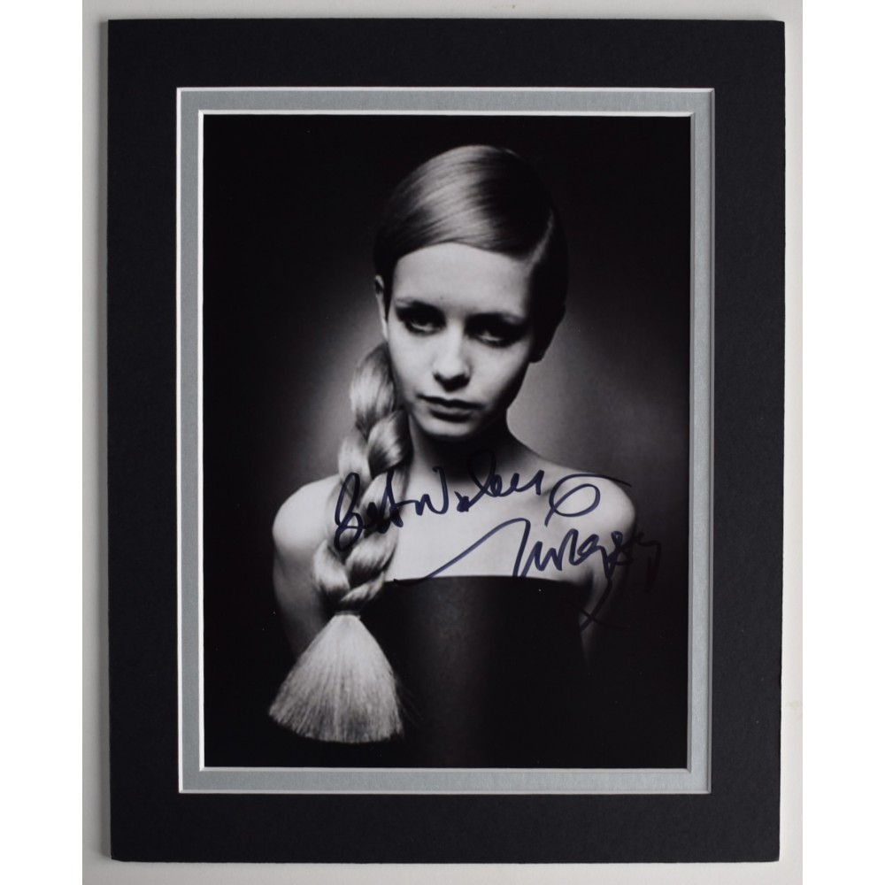 A 10x8 mounted photo display, signed by model & actress, Twiggy Lawson
