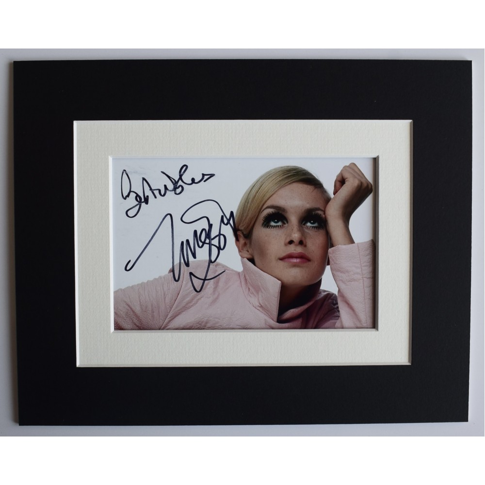 A 10x8 mounted photo display, signed by model & actress, Twiggy Lawson