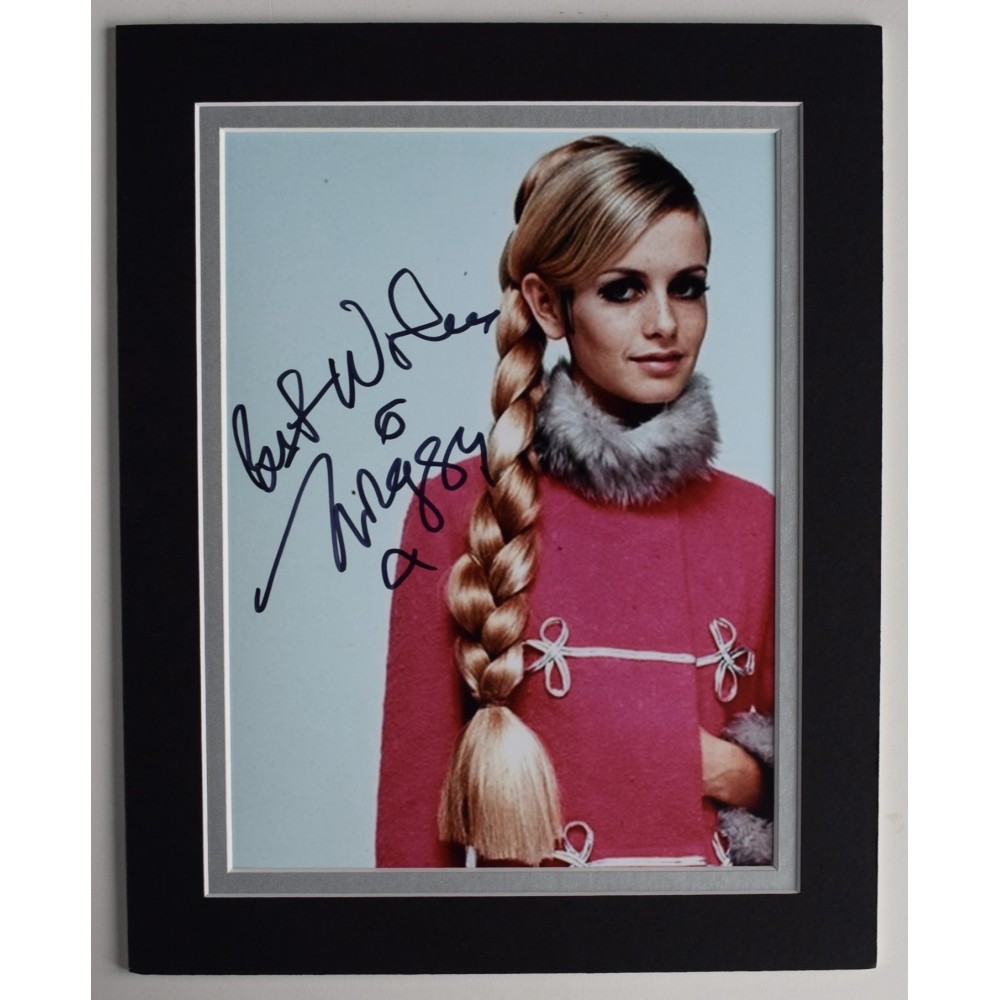 A 10x8 mounted photo display, signed by model & actress, Twiggy Lawson