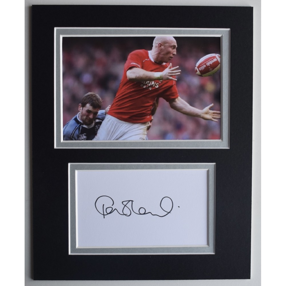 A 10x8 mounted photo display, signed by Welsh rugby legend, Tom Shanklin