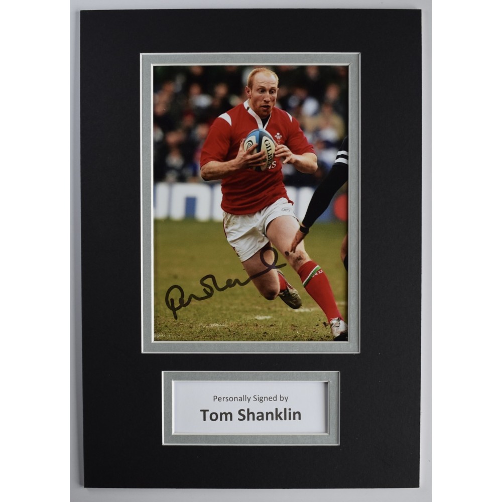 Tom Tomos Shanklin Signed Autograph A4 photo display Wales Rugby Union COA AFTAL Perfect Gift Memorabilia