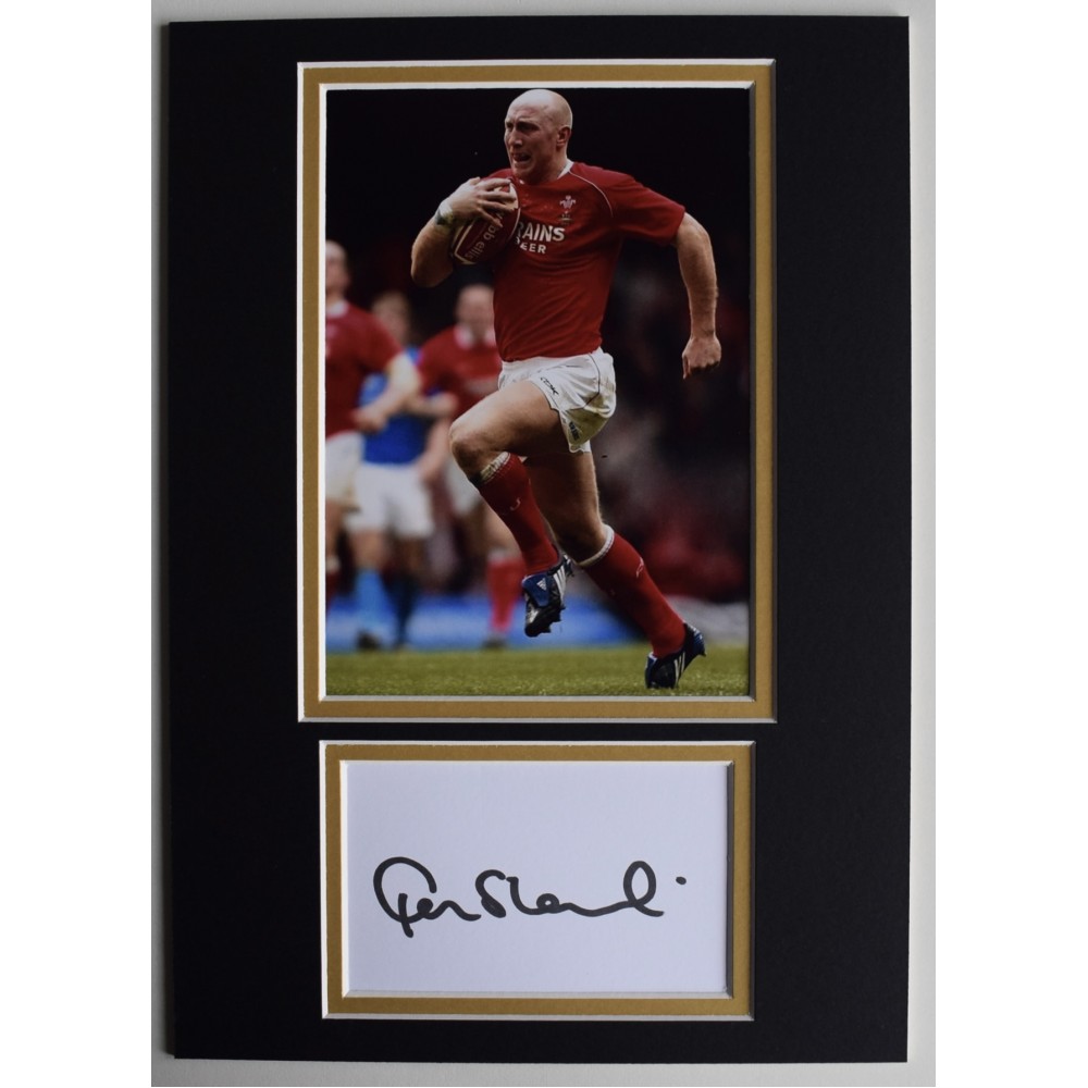 A4 photo mount display personally signed by Welsh rugby legend, Tomos Shanklin
