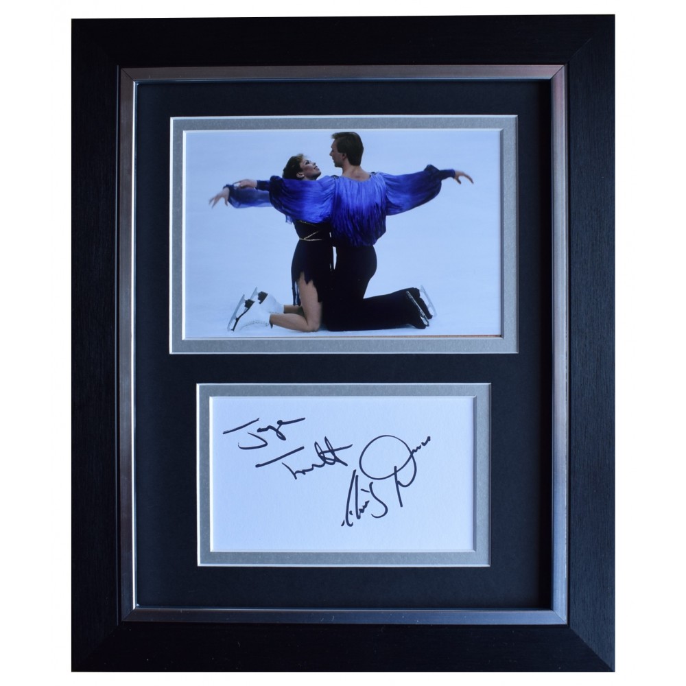 You are looking at a high quality, professionally FRAMED & mounted photo display which has been personally signed by Olympic skating champions, Torvill & Dean. The white card has been signed and complimented with a 6x4 inch photo and then housed within a superb double mount that compliments the deluxe black and silver trim quality frame making it a 10x8 inch size overall framed display. This is ready to be hung straight on the wall or can also be free standing- a really impressive piece of memorabilia that would make a perfect affordable gift for someone special.